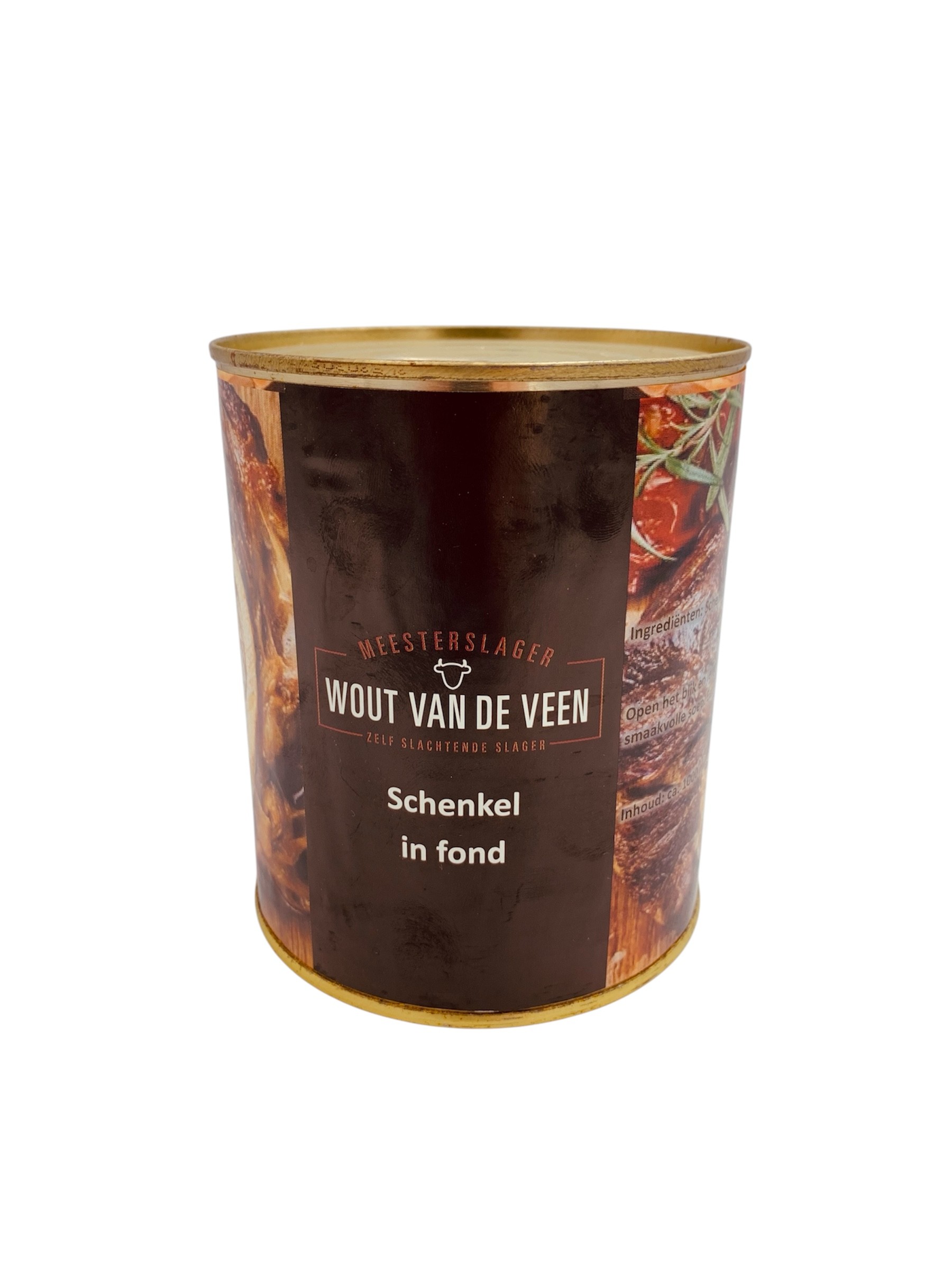 Inhoud klein blik: 1 schenkel met fond (0.4 liter) Inhoud groot blik: 1 schenkel met fond (0.9 liter)