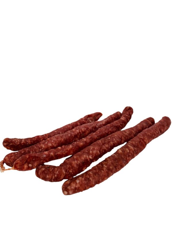 Ingrediƫnten | Varkensvlees, colorozozout, Gegrilde, paprika, zonnebloemolie, groene, olijf, (olijf, zout), knoflook, sjalot, water, witte, wijn, azijn, koriander, suiker, zout, peper, voedingszuur, (melkzuur), antioxidant, (ascorbinezuur), conserveermiddel, (kaliumsorbaat), keukenzout, kleurstof:, E, 120, karmijn, starterculturen:, (Staphylococcus, carnosus, Lactobacillus, plantarum) |