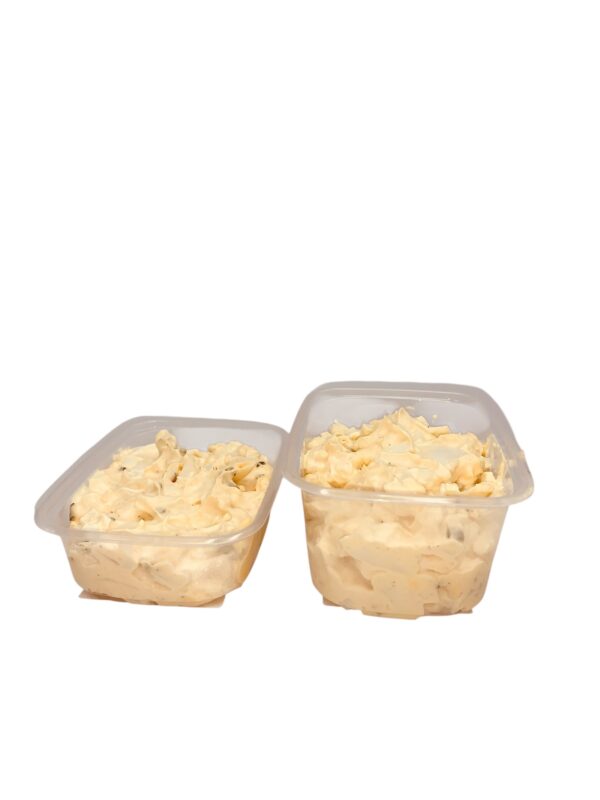 scharreleieren, water, zout, voedingszuur:, citroenzuur, E330, conserveermiddel:, azijnzuur, E260, voedingszuur:, trinatriumcitraat, (E311), koolzaadolie, scharrelEIGEEL, suiker, azijn, MOSTERD, (azijn, MOSTERDzaden, zout, specerijen), zuurteregelaar:, E330., conserveermiddel:, E202., kleurstof:, E160a., stabilisator:, E415., antioxidant:, E385, bieslook, stabilisator:, (E, 262, natriumacetaat, E, 331, natriumcitraten), antioxidant:, (E, 301, natriumascorbaat, E, 300, ascorbinezuur), gemodificeerd, mais, zetmeel:, geacetyleerd, dizetmeeladipaat, E, 1422, dextrose, natuurlijke, aroma, peper, zwart