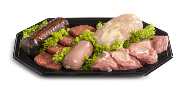 Deze schotel bevat de volgende producten: Kippootrollade á 1 kilo, 4 Hamburgers, 4 Varkensribeye, Hele grillworst, Klein leverworstje.